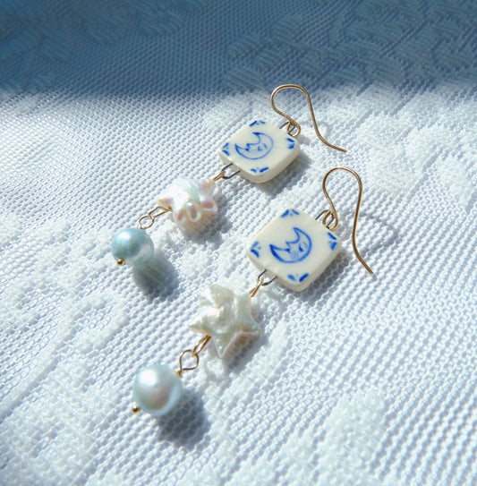 Starry Moon Tile Earrings