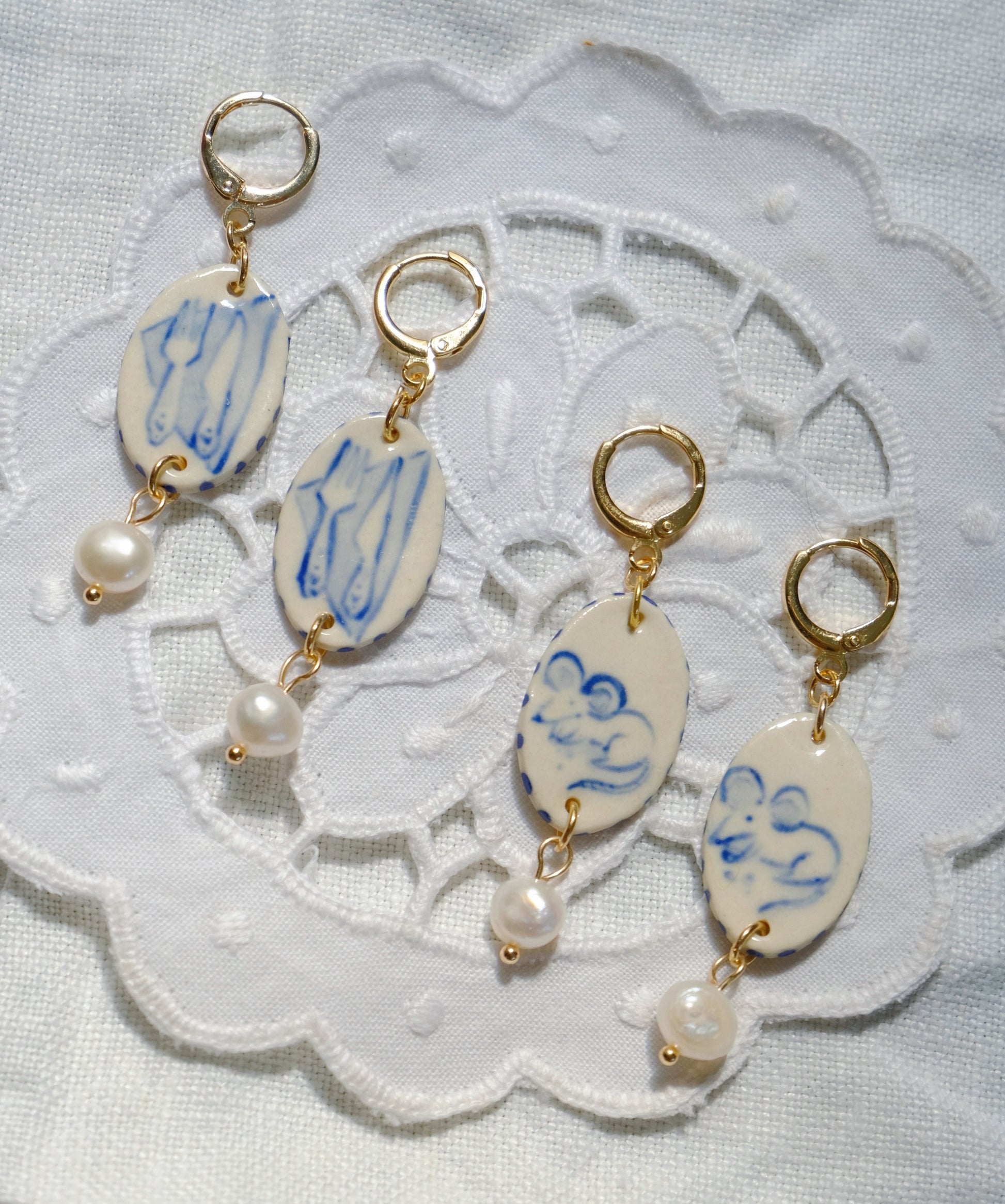 Handmade with love in Brooklyn using white ceramic clay and genuine freshwater pearls. Hand painted and one of a kind.