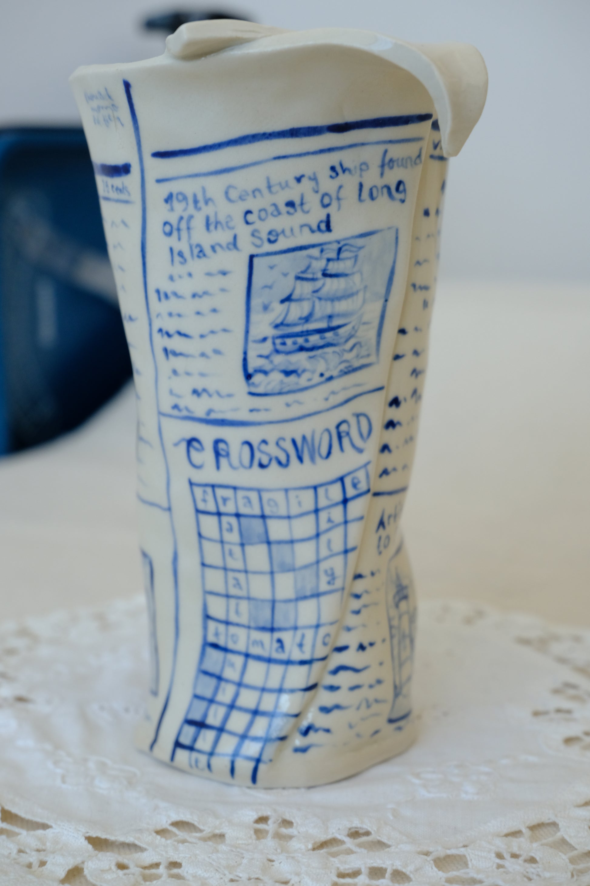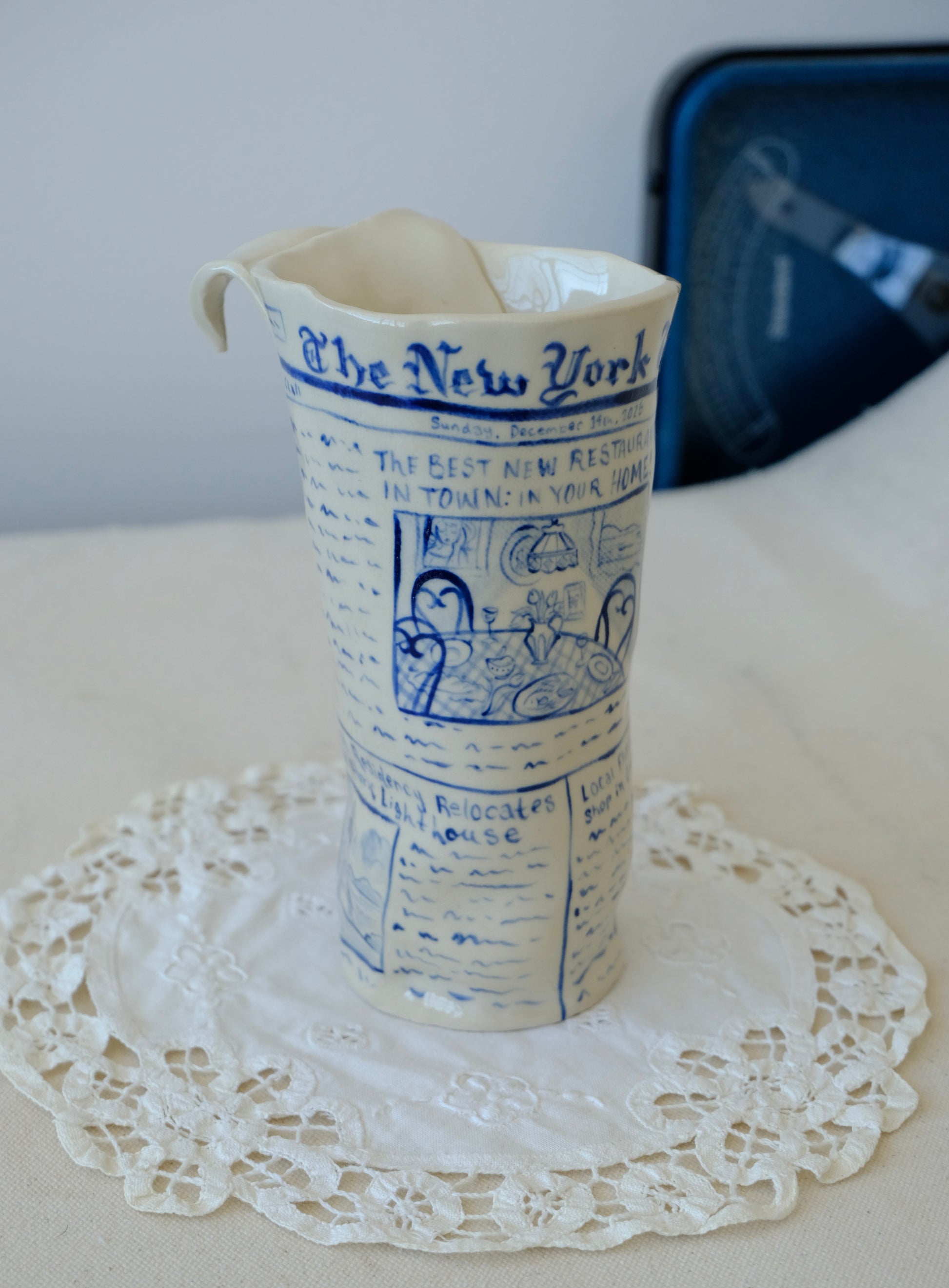 Blue Newspaper Vase