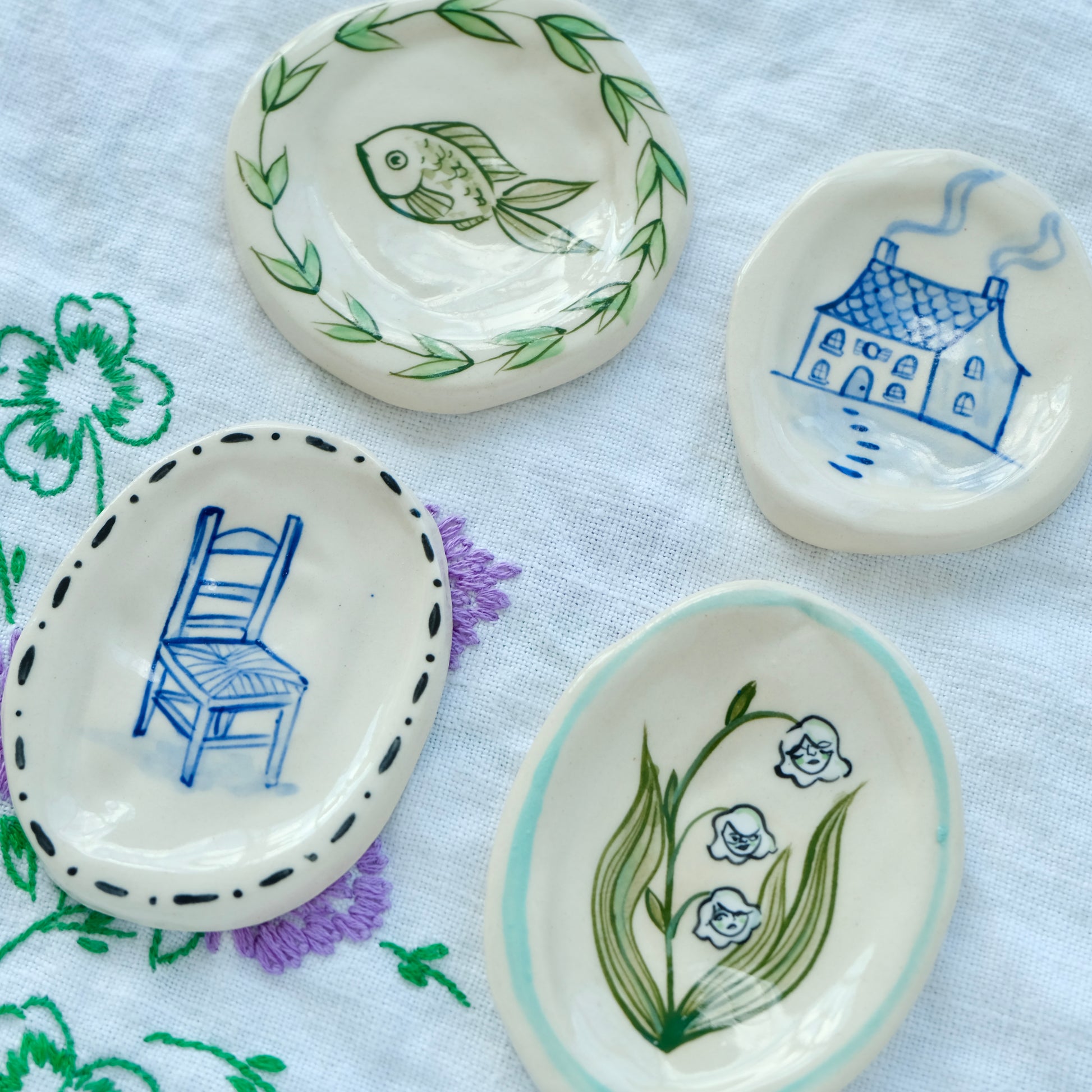 Hand painted on white ceramic stoneware, these one of a kind pieces are perfect for holding your smallest treasures.