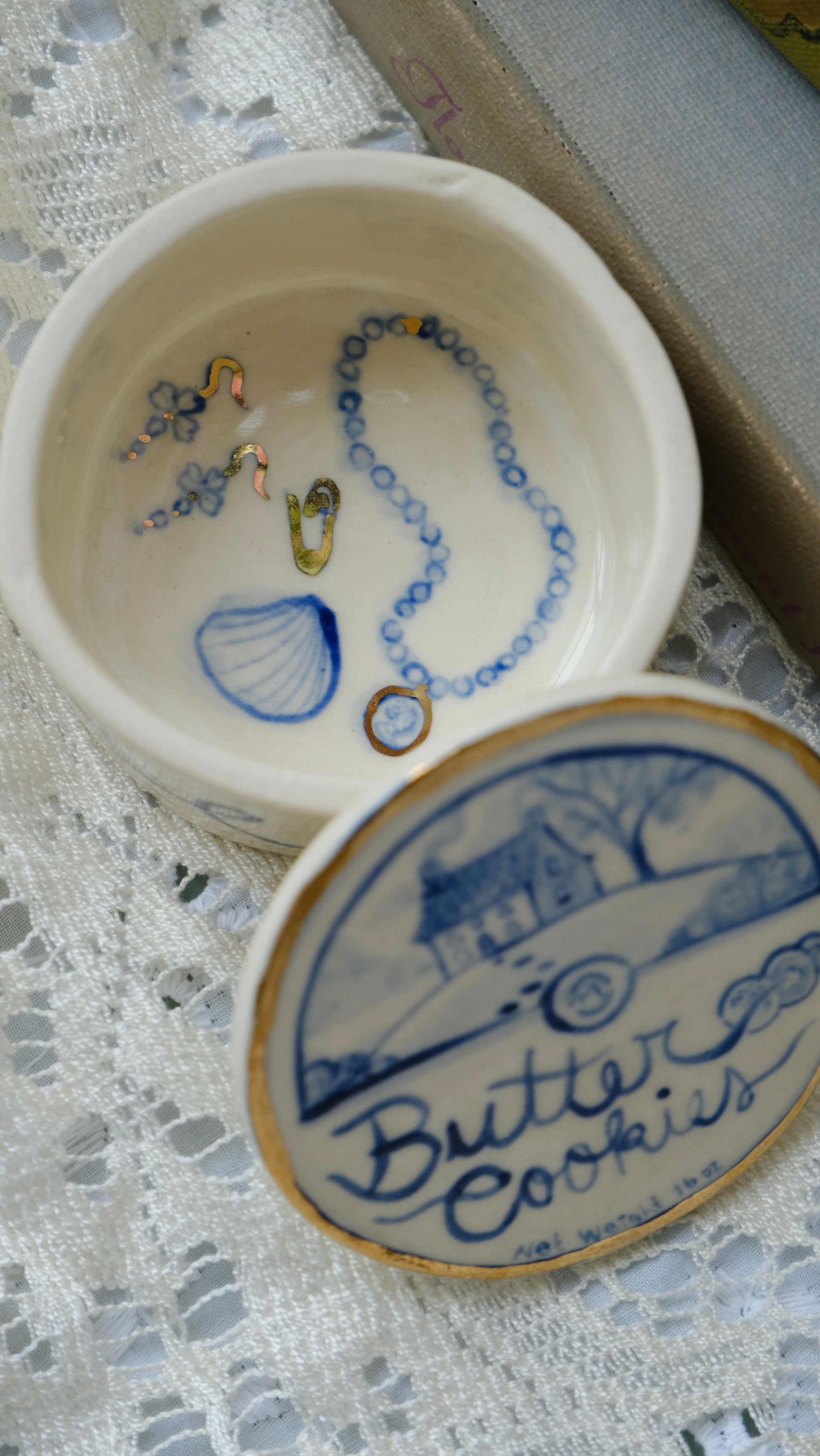 Hand sculpted and painted with love using white ceramic stoneware and gold luster details.