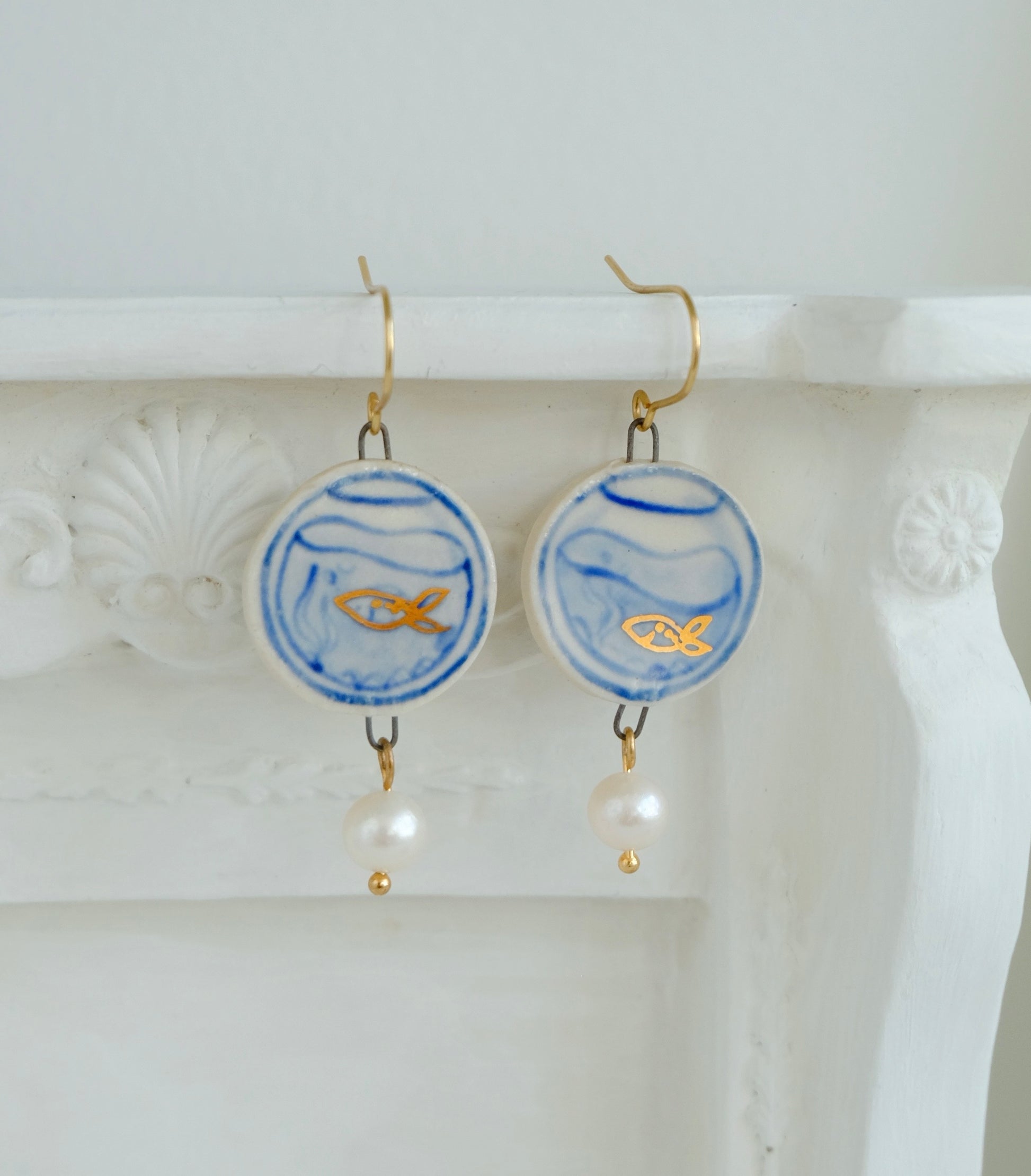 Handmade with love using white ceramic clay, genuine gold luster, & freshwater pearls. These cuties are truly one of a kind!
