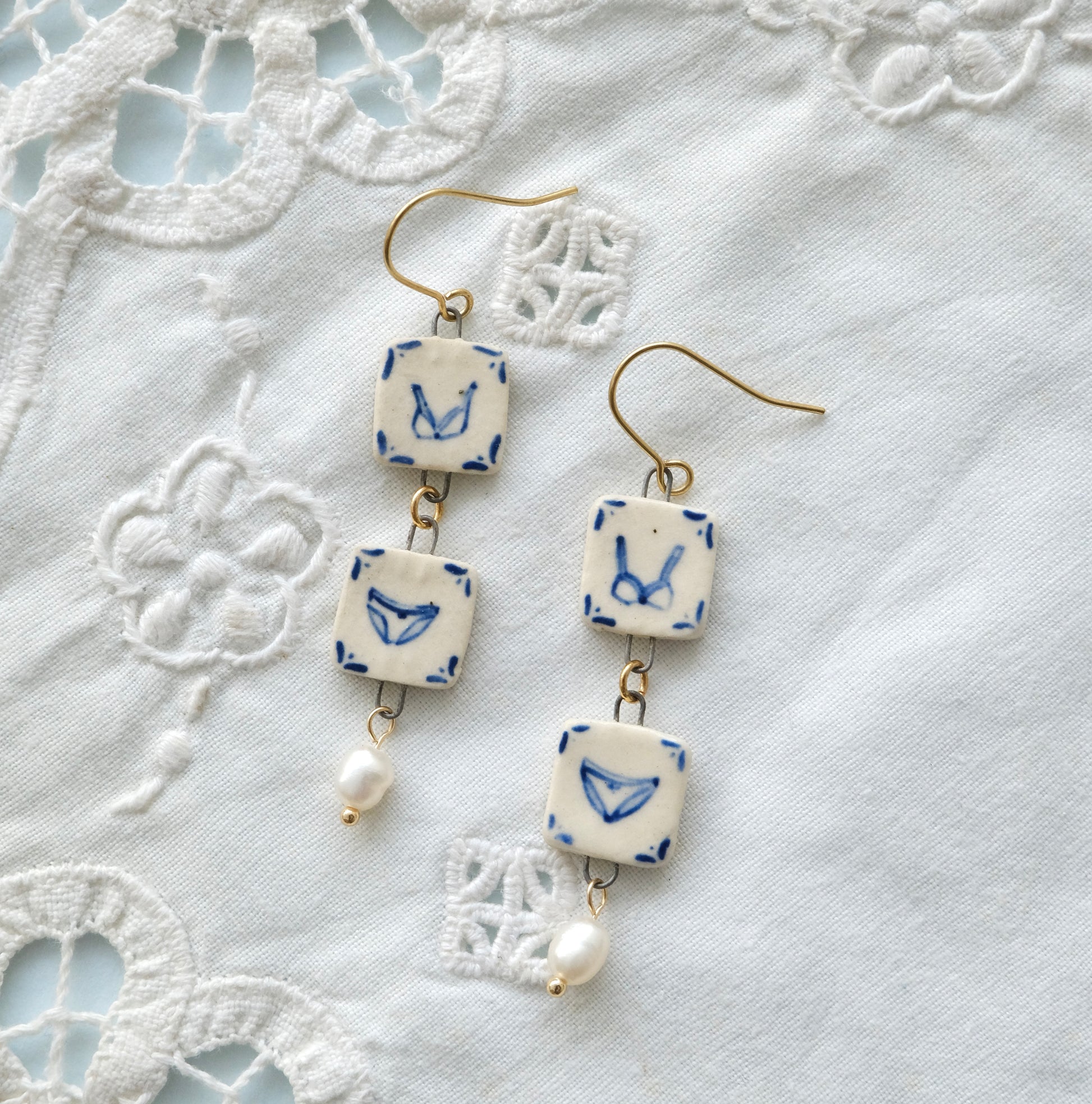 Handmade with love in Brooklyn using white ceramic clay & freshwater pearls. Hand painted and one of a kind.